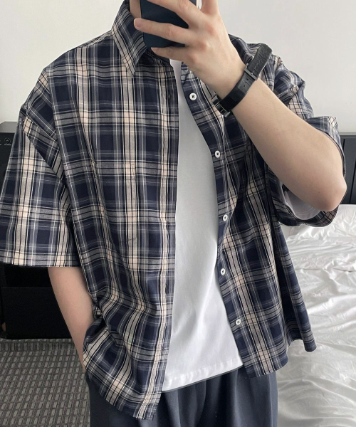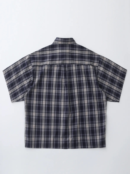 빈티지 워싱 네이비 체크 반팔셔츠