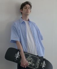 더 시티 스트라이프 반팔 셔츠 (나노 스카이)