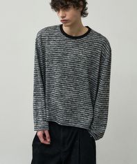 블렌디드 스트라이프 크롭 니트 티셔츠 [블랙]