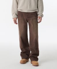 피그먼트 데님 와이드 더블 니 카펜터 팬츠 [브라운]