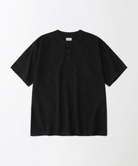 VINTAGE HENLEY NECK HALF SLEEVE TEE_BLACK
