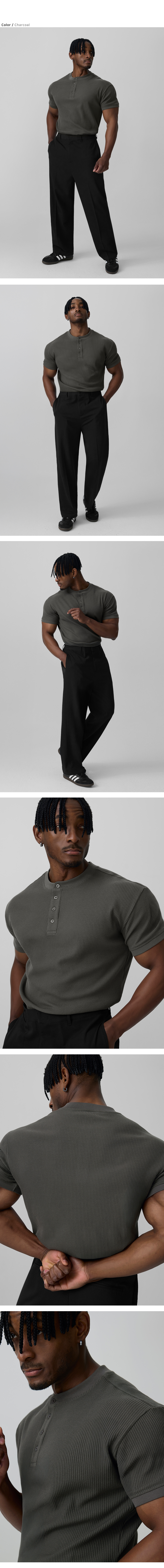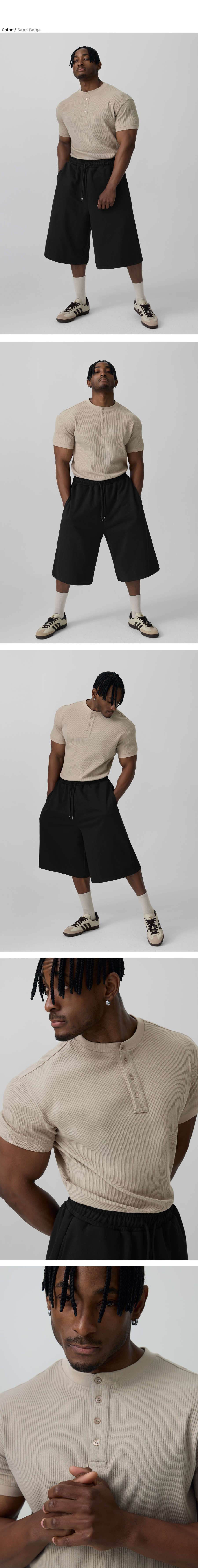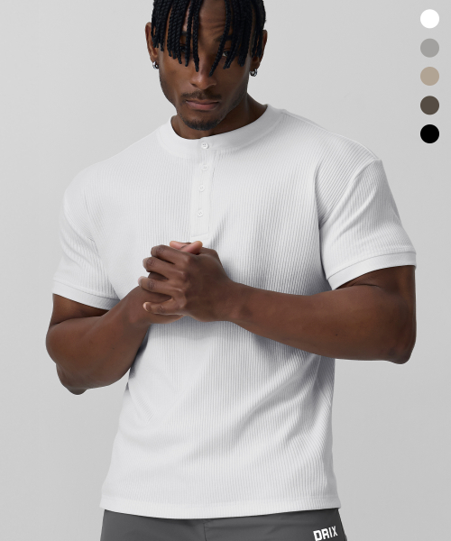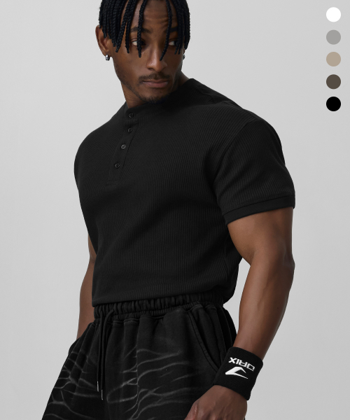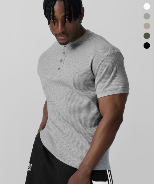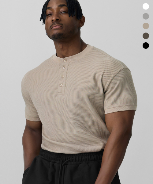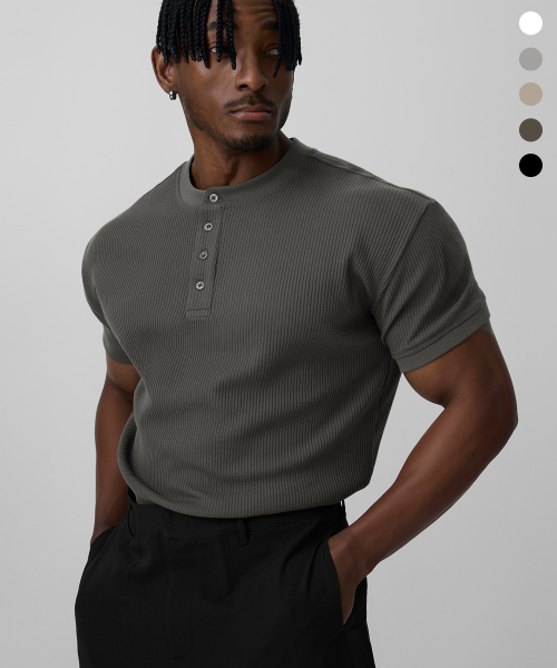 립브드 머슬핏 헨리넥 하프 슬리브_5color