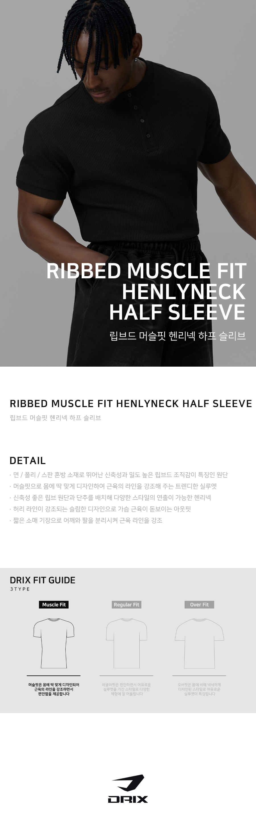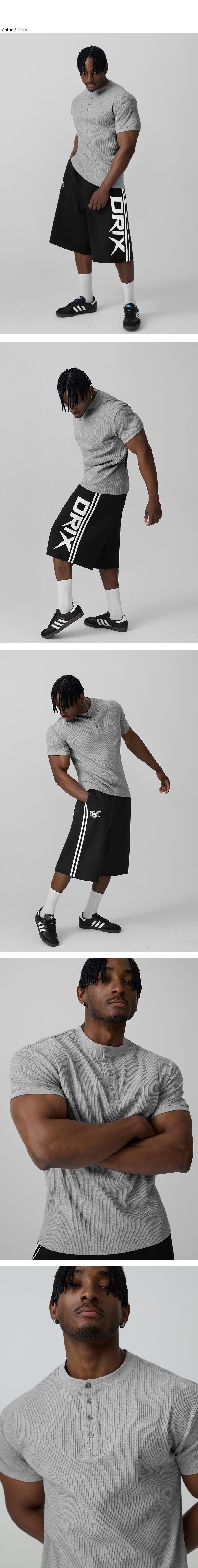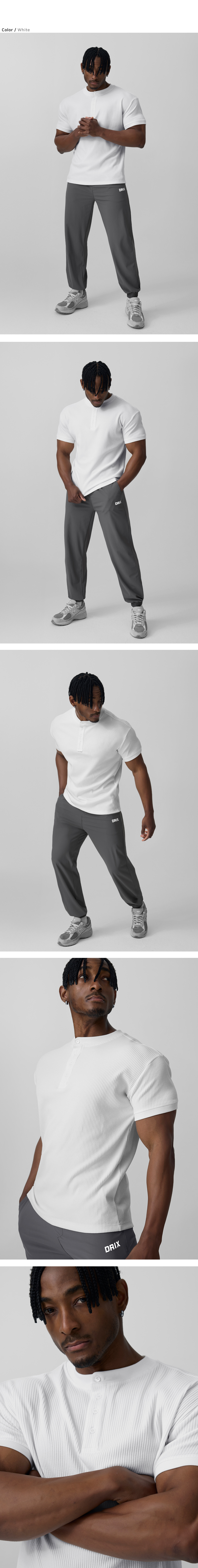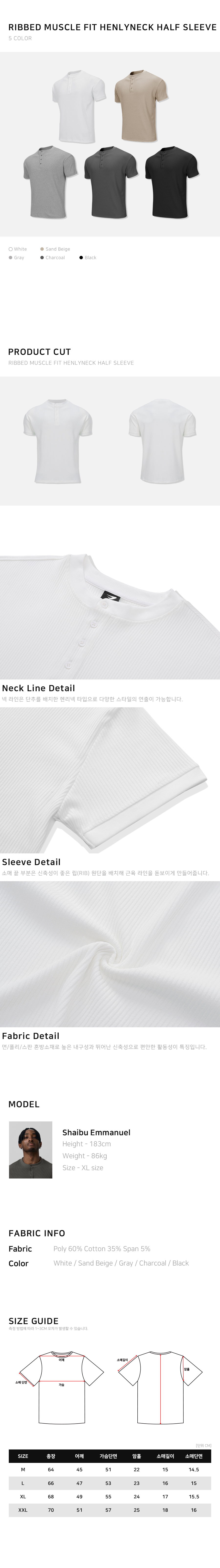 립브드 머슬핏 헨리넥 하프 슬리브_5color