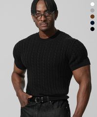 케이블 머슬핏 하프 슬리브 니트_5color