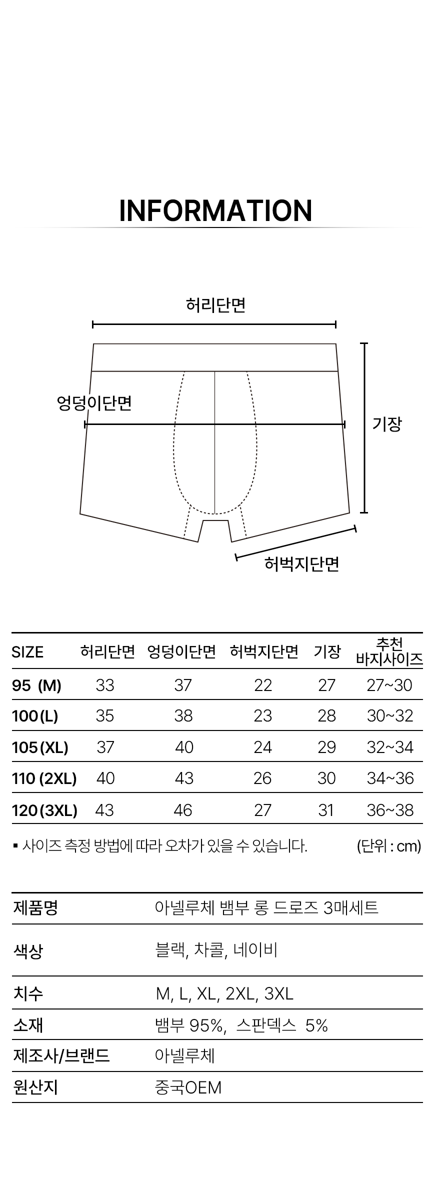 기능성 스포츠 남자팬티 남성 뱀부 롱 드로즈 팬티 속옷 3매세트