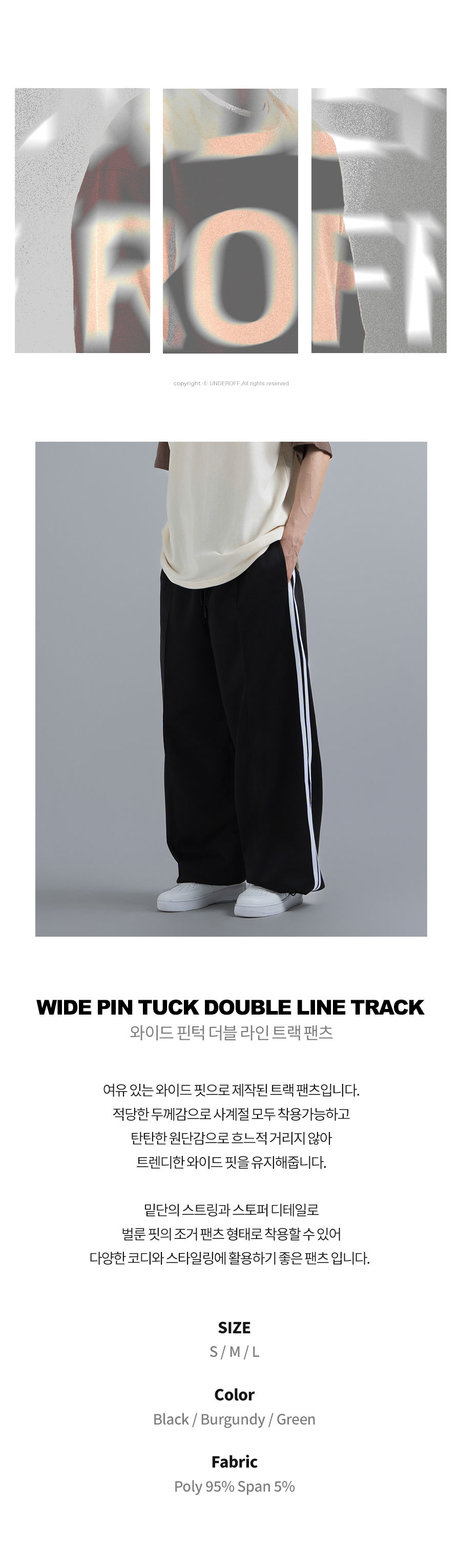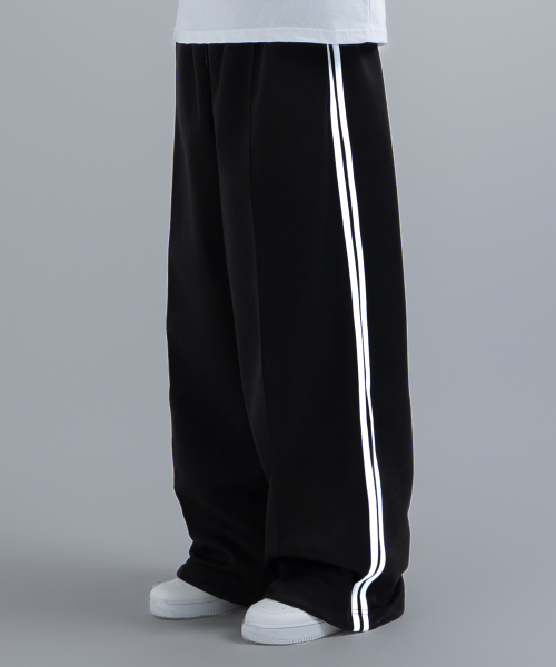 와이드 핀턱 더블 라인 트랙 팬츠 블랙