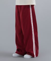 와이드 핀턱 더블 라인 트랙 팬츠 버건디