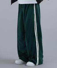 와이드 핀턱 더블 라인 트랙 팬츠 그린