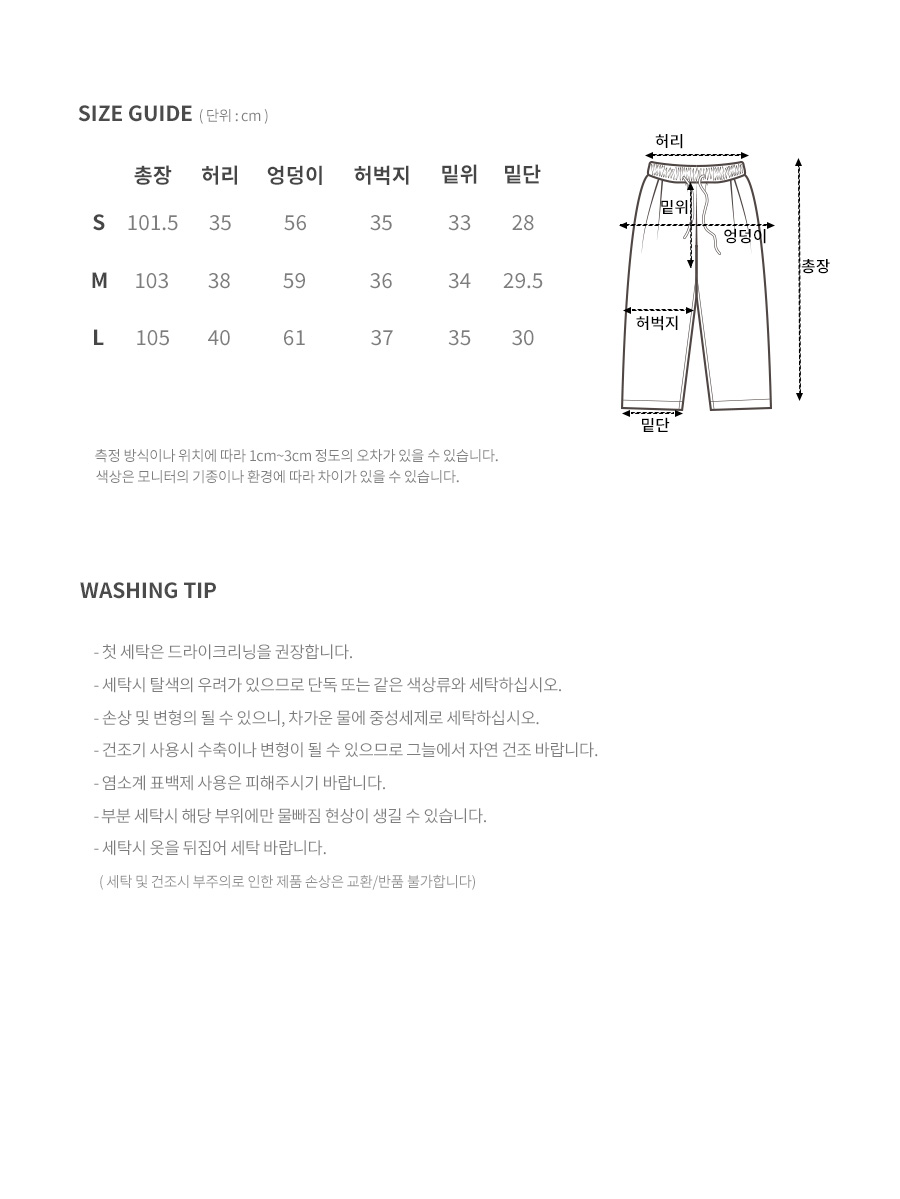 빈티지 프론트 워싱 와이드 벌룬 데님 팬츠 4Color