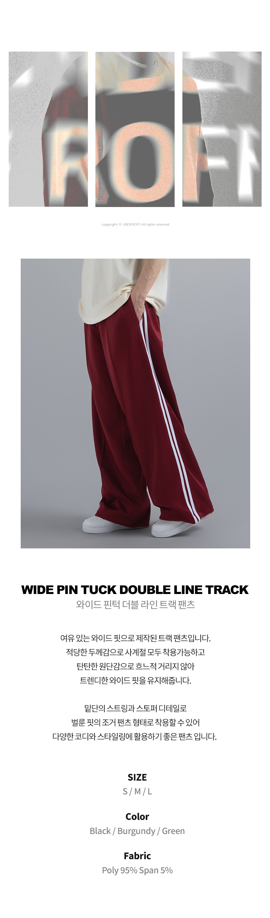 와이드 핀턱 더블 라인 트랙 팬츠 버건디