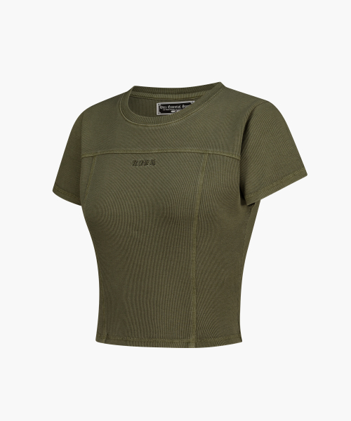 에센셜 리브드 피그먼트 크롭 숏 슬리브 (Pigment Khaki)