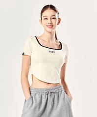 캘리 스퀘어넥 크롭 숏슬리브 푸딩크림 XTFST07J2