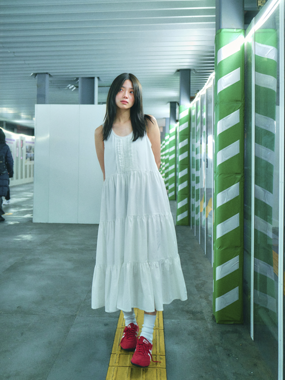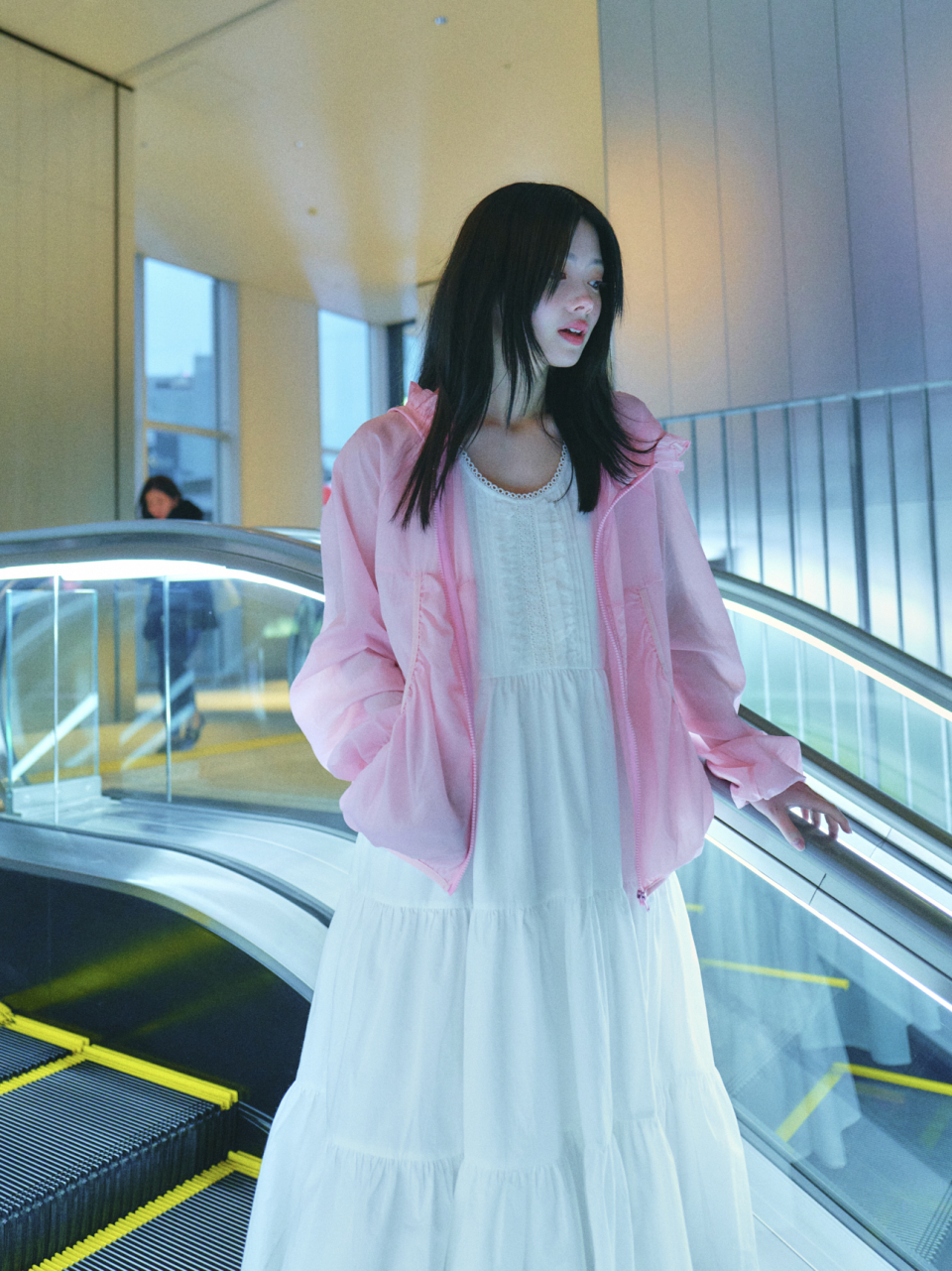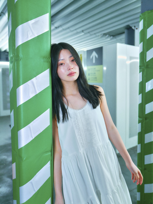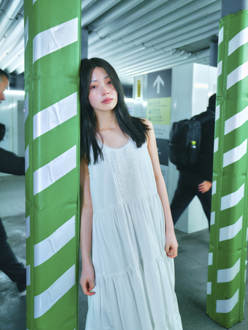 CHEST FRILL LONG DRESS_OFF WHITE