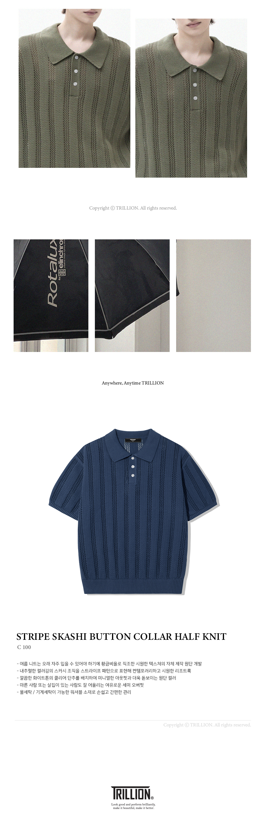 트릴리온(TRILLION)은 클래식, 빈티지, 아웃도어, 어반 등의 스타일을 베이스로 트릴리온만의 컨템포러리 감성을 더해 높은 퀄리티의 제품을 합리적인 가격에 제시합니다. 단 하나의 제품에도 만족감을 느낄 수 있는 가치를 추구합니다.