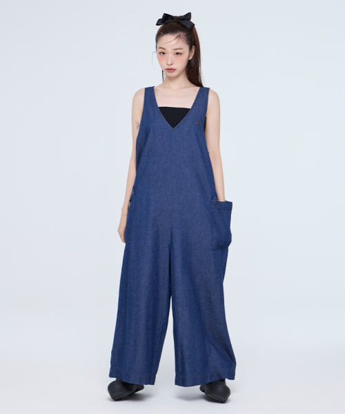 여성) 데님 브이넥 루즈핏 점프수트