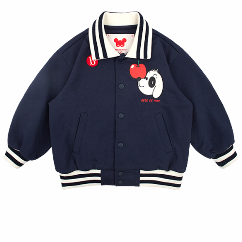 베베드피노 코코 카라 베이스볼 자켓입니다. 매력적인 Navy 컬러의 부드러운 Cotton 혼방 소재로 제작했습니다. 전체적으로 여유로운 실루엣의 져지 자켓으로 카라부분, 소매단, 밑단 스트라이프 요꼬 시보리로 포인트를 주었습니다. 앞중심 스냅 잠금 처리로 입고 벗기에 용이합니다. 이번시즌 베베드피노만의 귀여운 Coco 오브제가 포인트나염으로 들어가있습니다.