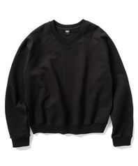 베이직 브이넥 오버핏 크롭 스웨트셔츠 - 블랙