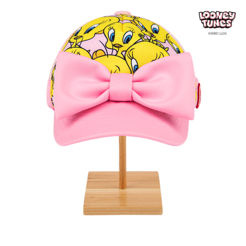 베베드피노 올오버 트위티 리본 메쉬 캡입니다. Looney Tunes 콜라보 제품으로 앞중심 Pink 컬러 네오플랜 원단과 Pink 컬러 메쉬 원단으로 제작했습니다. 앞 패널에 Looney Tunes의 귀여운 Tweety 오브제가 전판 롤프린팅으로 들어가있습니다. 앞중심 리본 장식이 포인트입니다. 뒷면 사이즈 조절기로 약간의 둘레 조절이 가능합니다.