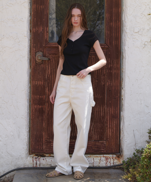 A FLOWER HENLEY NECK T-SHIRT_WHITE