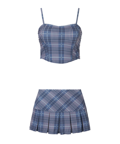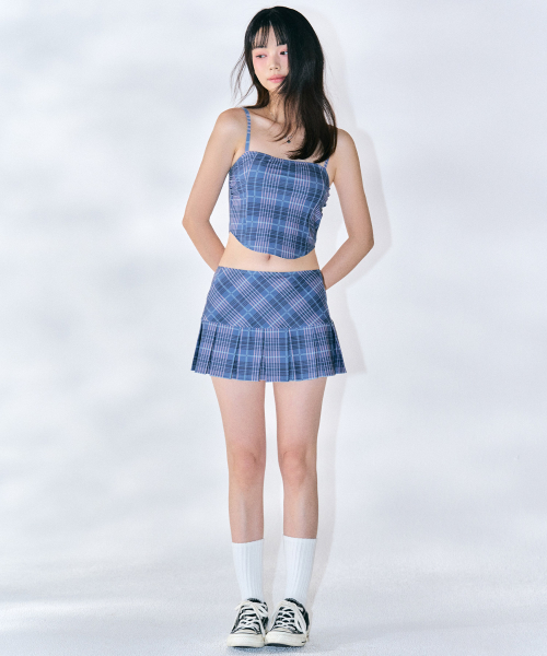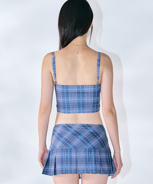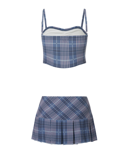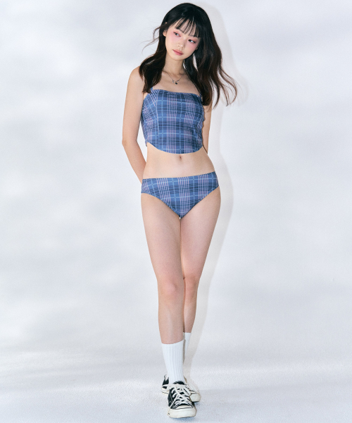 체크 뷔스티에 비키니 세트 [NAVY]