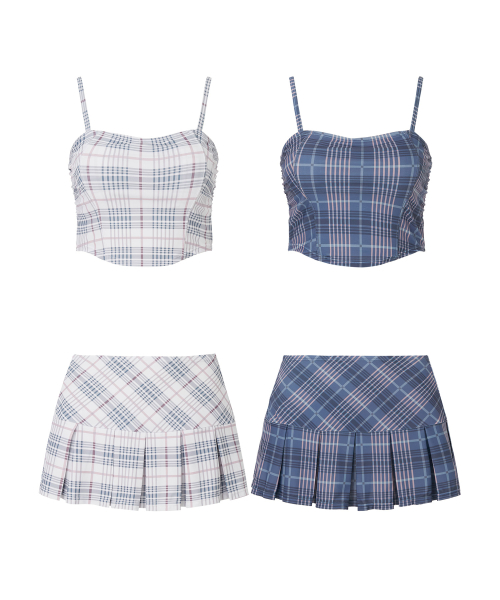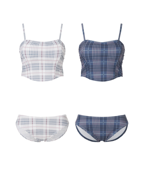 체크 뷔스티에 비키니 세트 [WHITE]