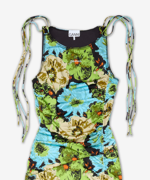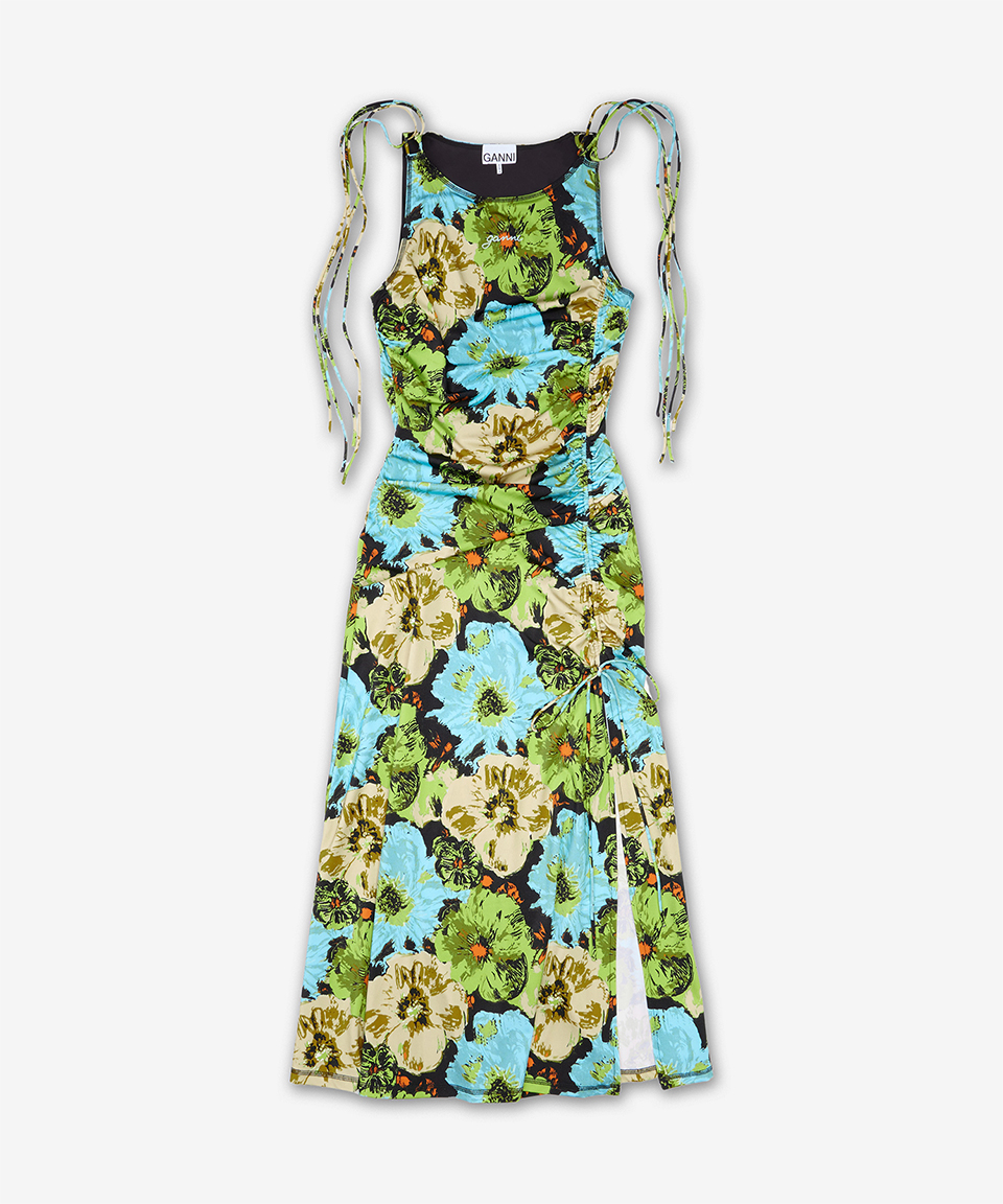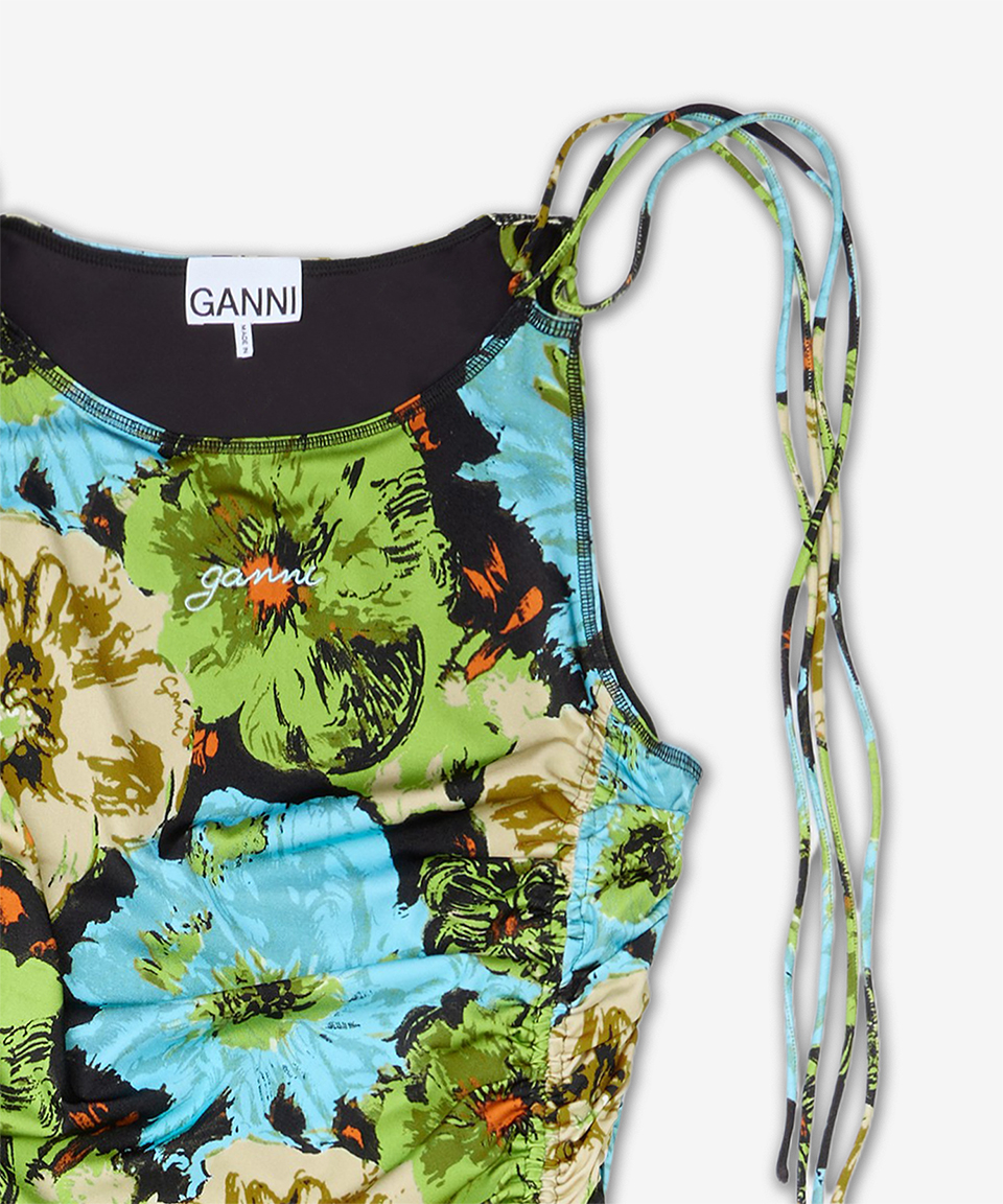 가니(GANNI)는 코펜하겐에서 탄생한 브랜드로 코펜하겐의 다채로운 색감이 브랜드에 고스란히 녹아있습니다. 또한 플로럴 패턴, 스마일 로고, 애니멀 프린팅, 레인보우 컬러를 통해 가니 특유의 유쾌한 디자인을 전개하고 있습니다.