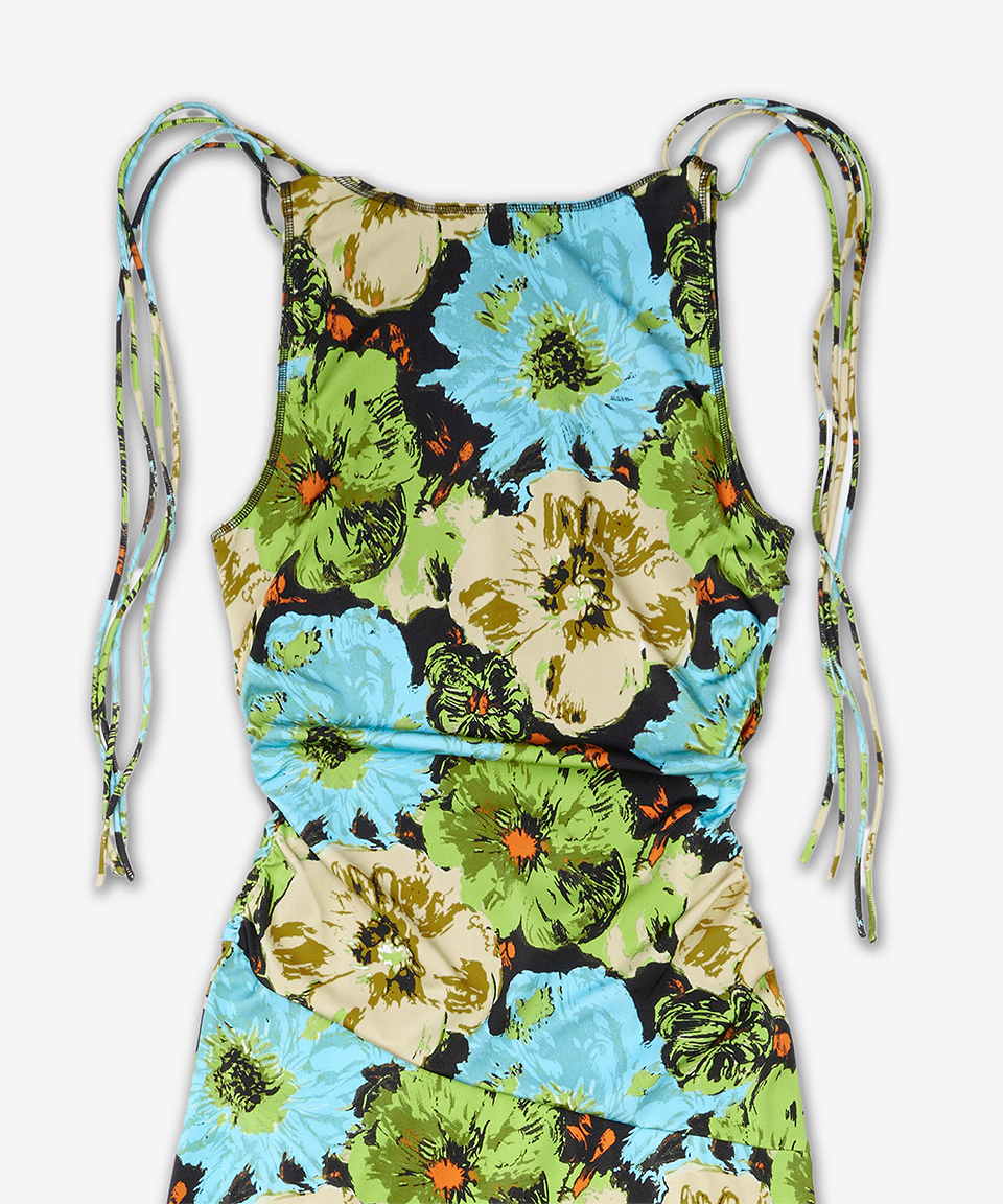 미니 보타니컬 자카드 타이 스트랩 원피스 - 피코트 / F9703268