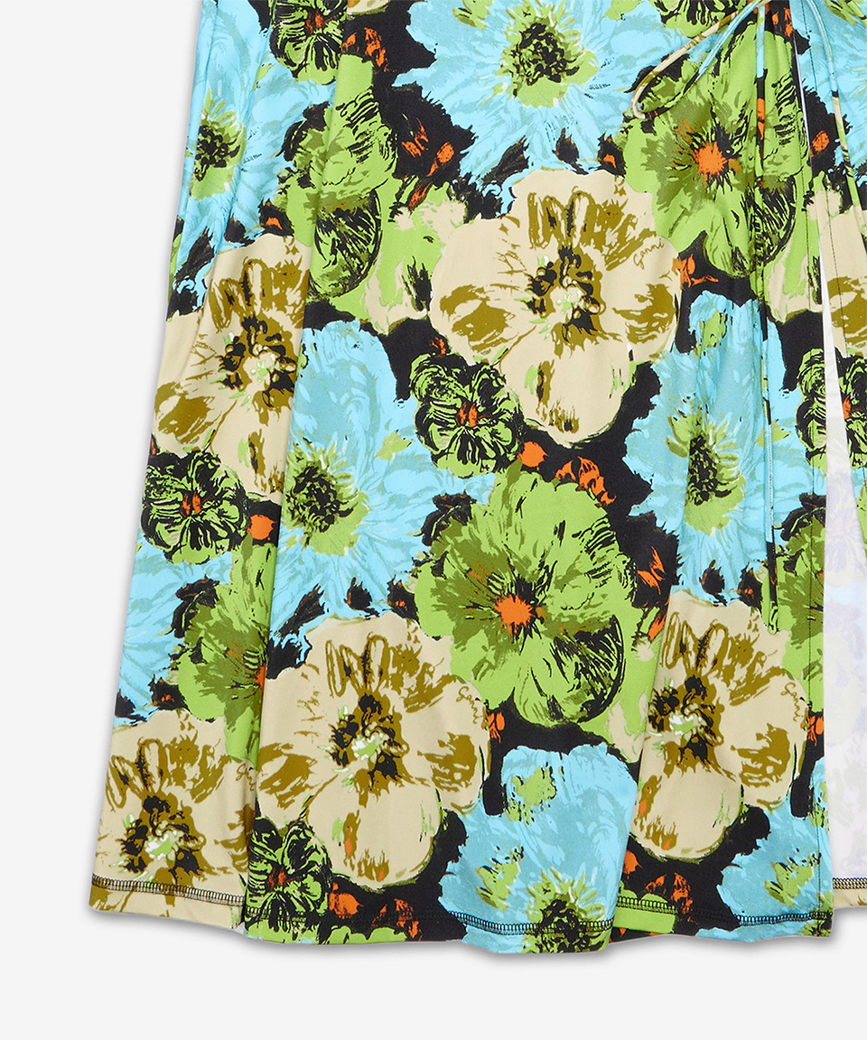 프린티드 새틴 개더드 원피스 - 에그렛 / W0262135