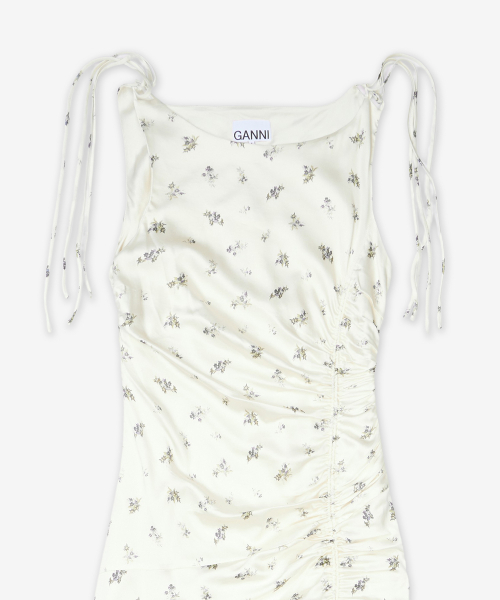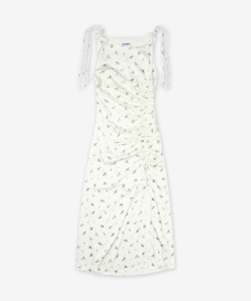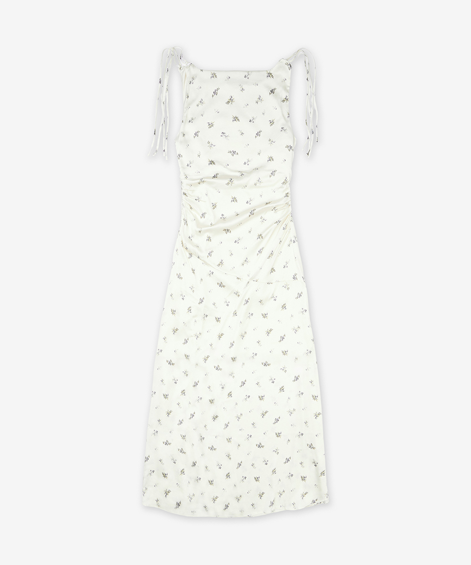 프린티드 새틴 개더드 원피스 - 에그렛 / W0262135