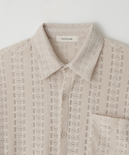 JN160 CROCHET OPEN COLLAR 1/2 SHIRT - IVORY