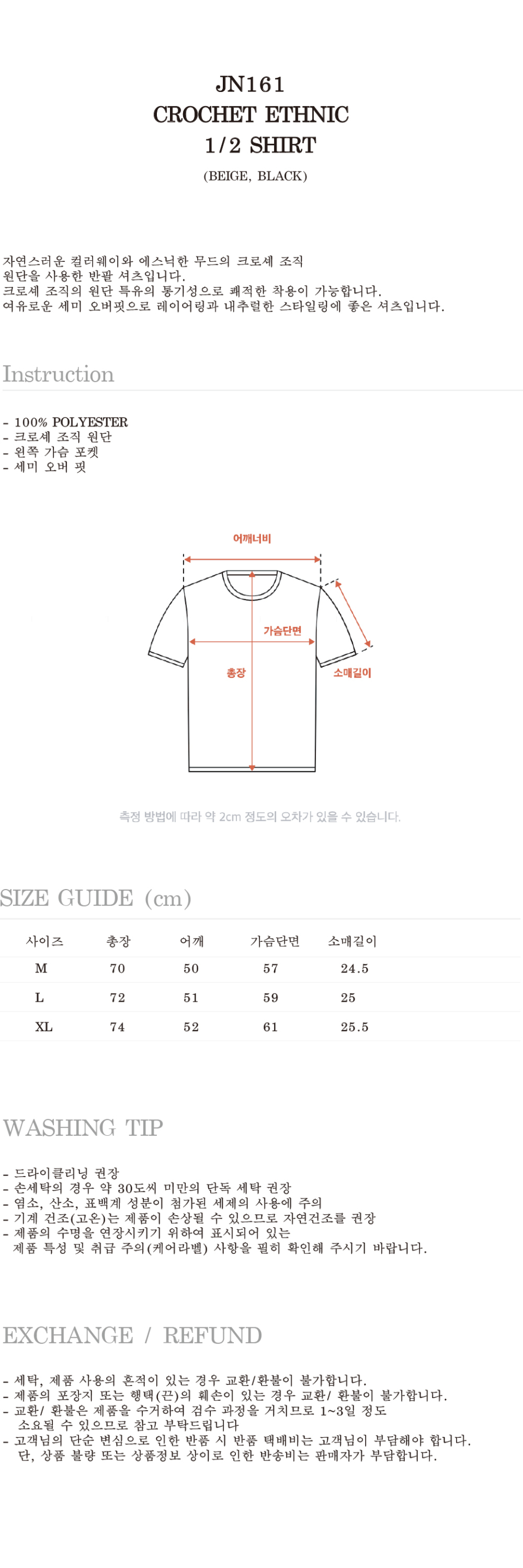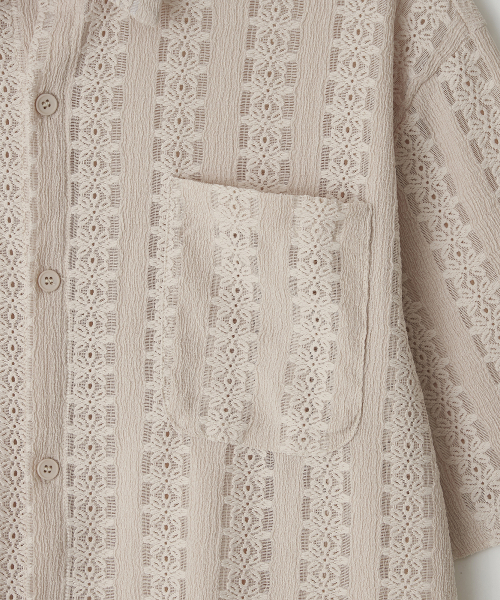 JN161 CROCHET ETHNIC 1/2 SHIRT - BEIGE