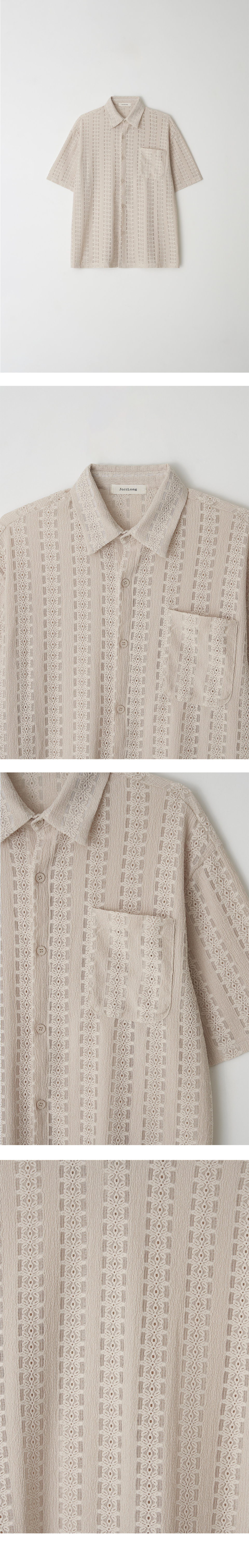 페이즐리 펀칭 자수 린넨라이크 셔츠(카키그린)