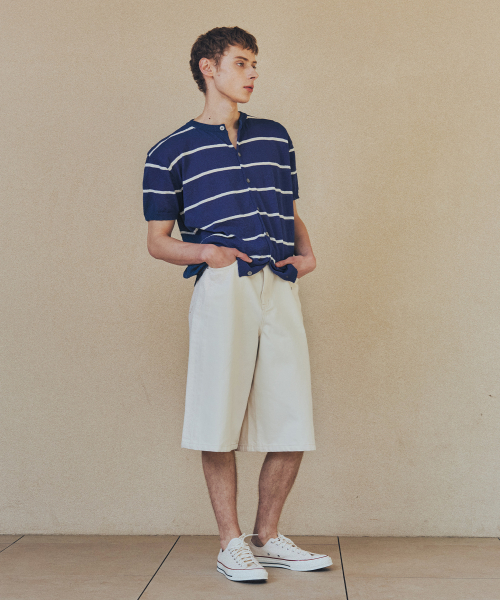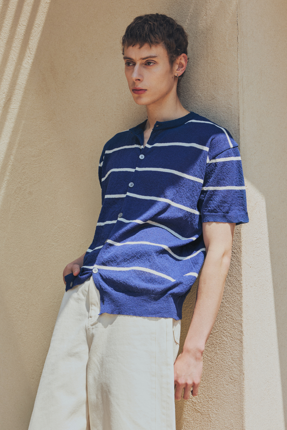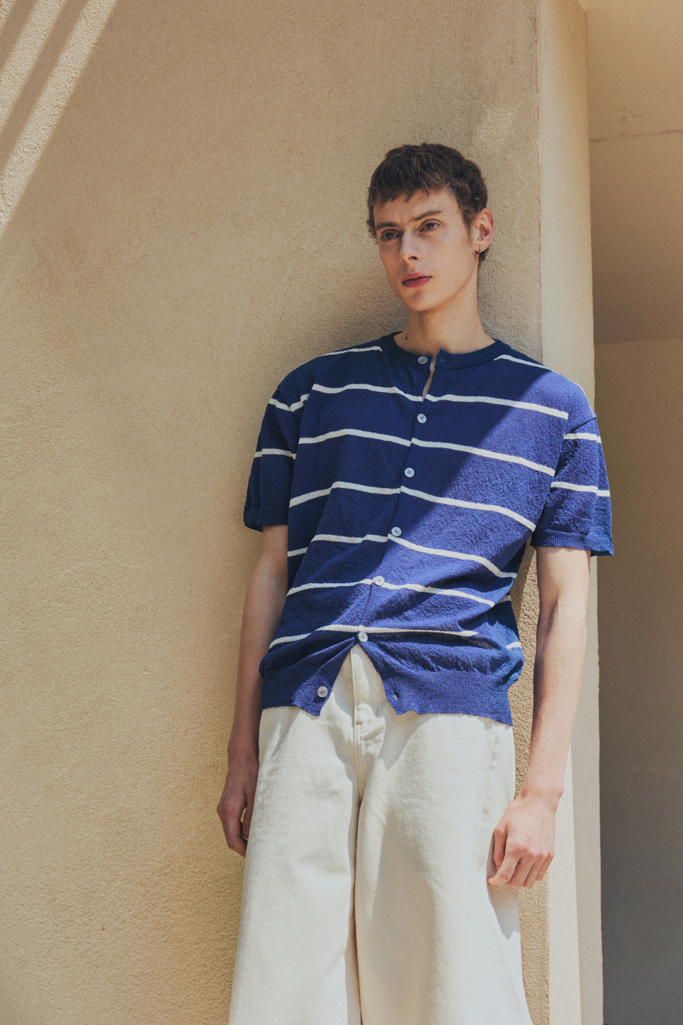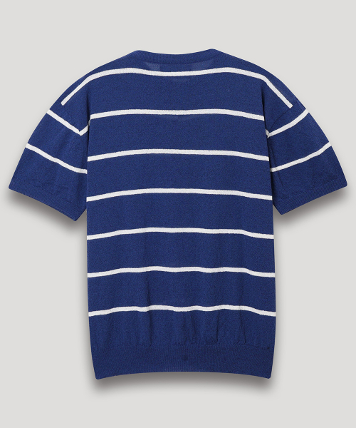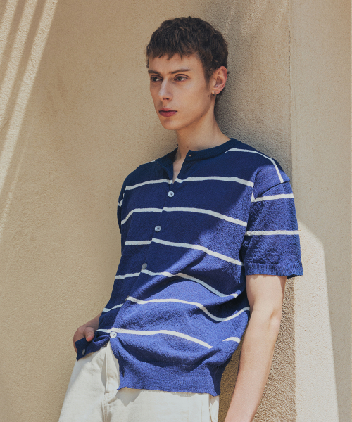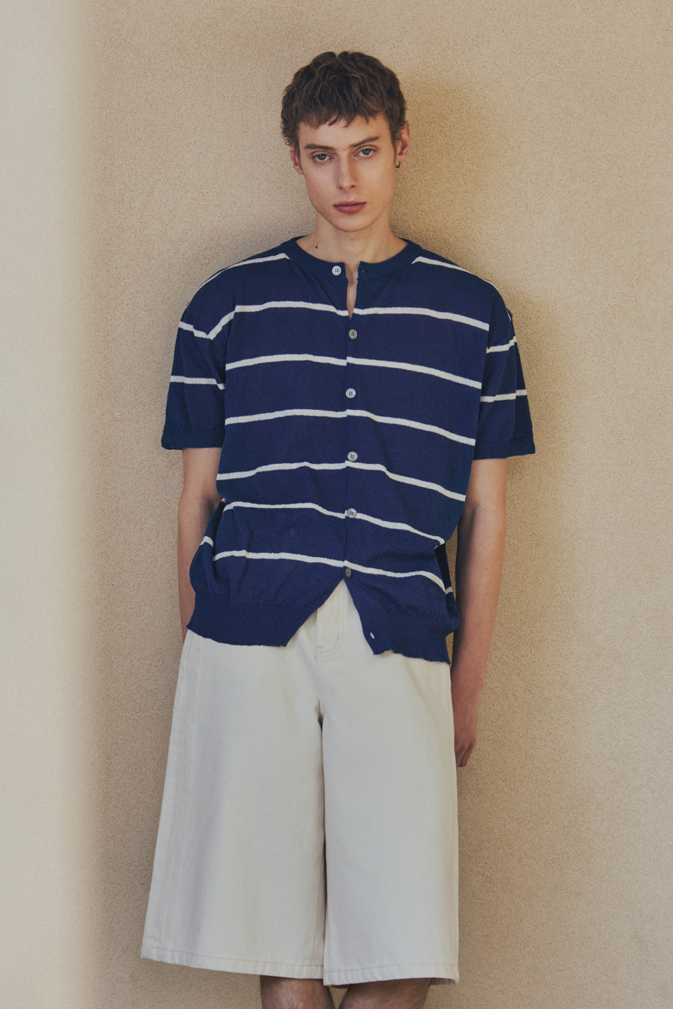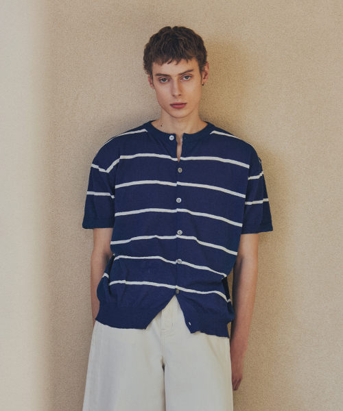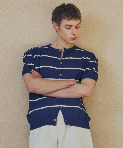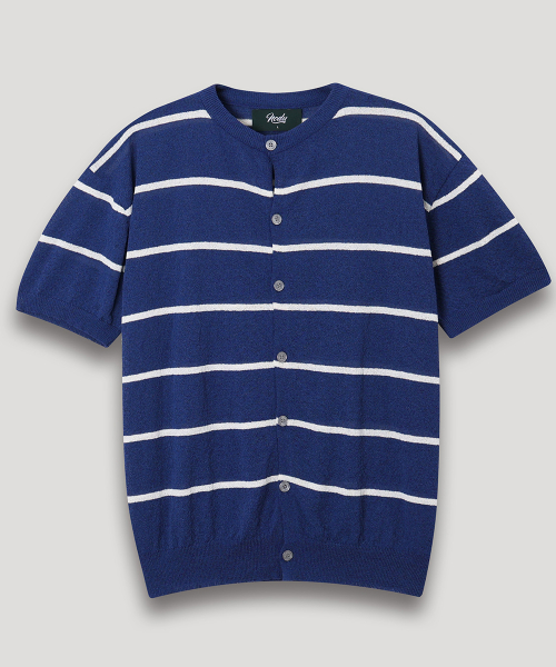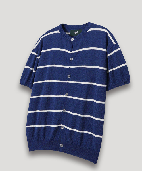 썸머 스트라이프 라운드 반팔 가디건 [블루]