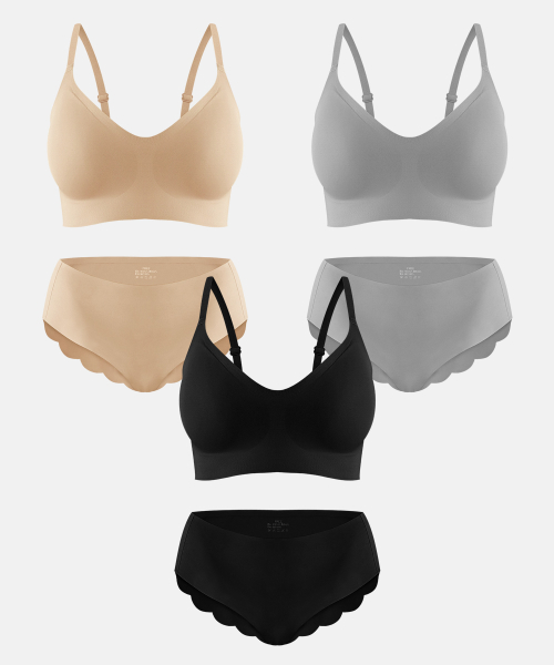 [3PACK] 브이 착착 편해 심리스 브라+팬티 세트