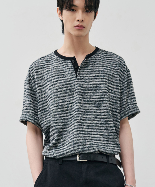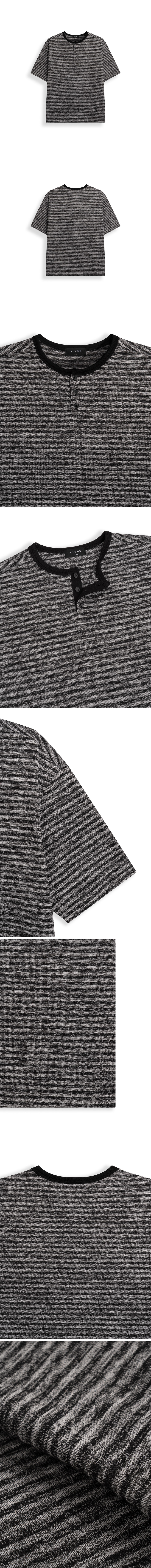 블렌디드 스트라이프 헨리넥 하프 니트티셔츠 [블랙]