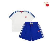 전면의 아이스비스킷 레터 자수가 포인트인 데님 워크 숏츠입니다.