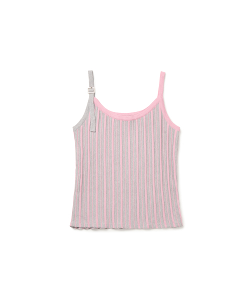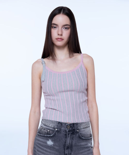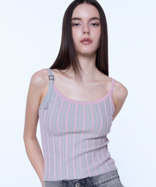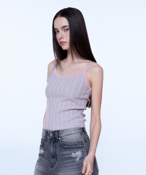 배색 니트 슬리브리스 - 핑크