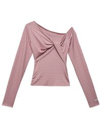 원숄더 슬림 롱슬리브 - 핑크