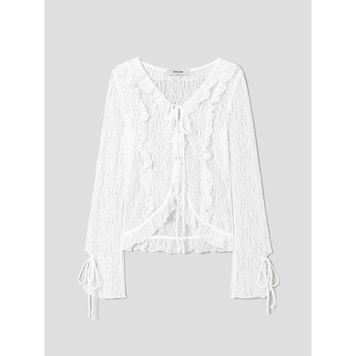 요철이 느껴지는 조직이 돋보이는 가벼운 블라우스입니다. 긴소매이지만 여름철 활용하기 좋은 얇은 두께로 제작되었습니다. 다양한 하의와의 코디가 용이한 아이템입니다.