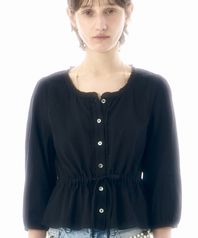 프릴 7부 스트링 블라우스 BK