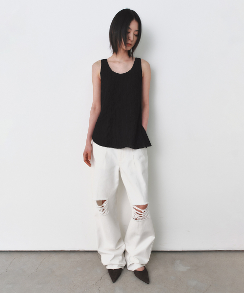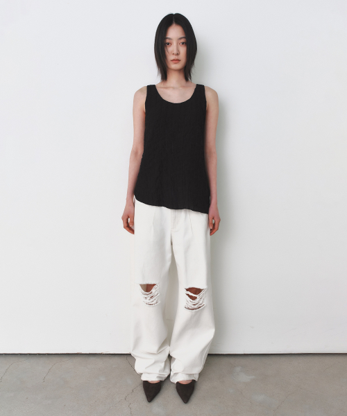 플리츠 루즈핏 탑 BLACK