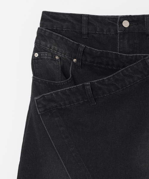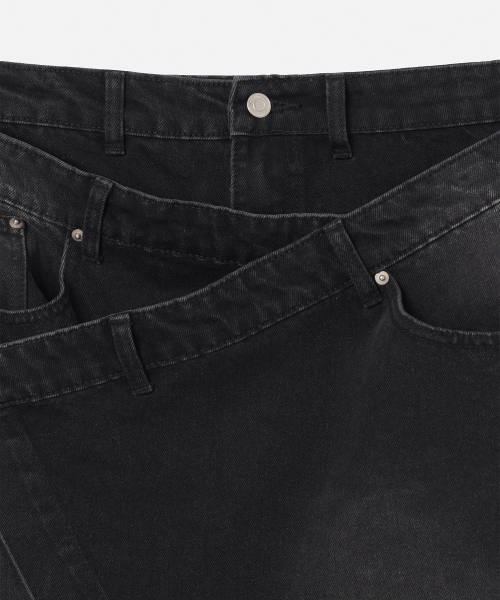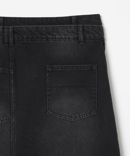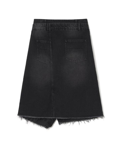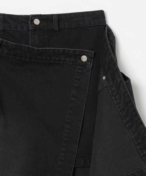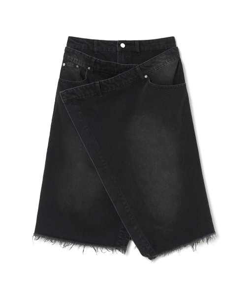 데님 미디 랩 스커트 [데님 블랙]