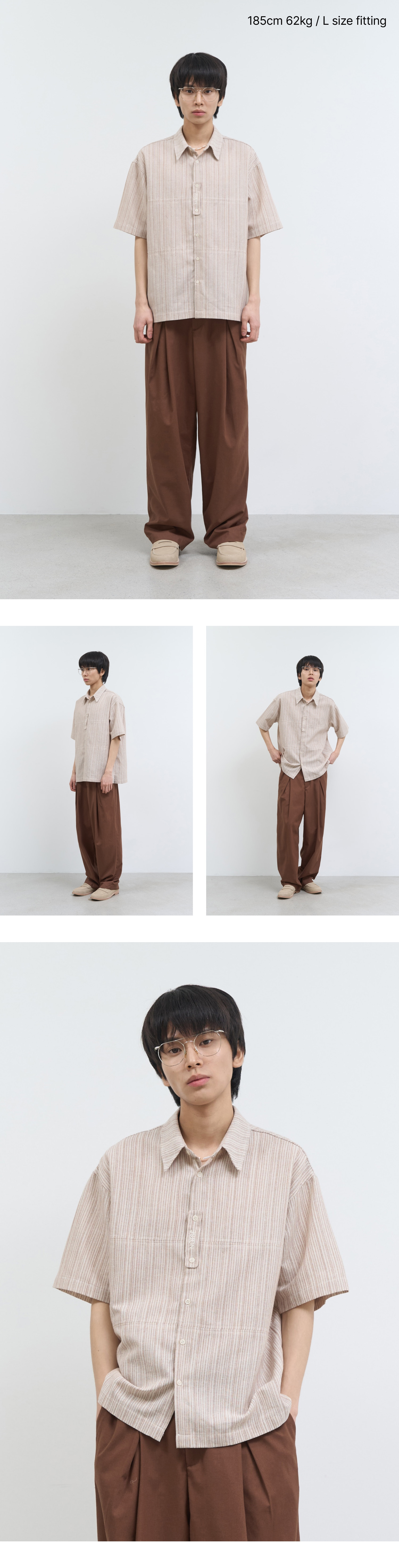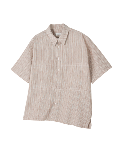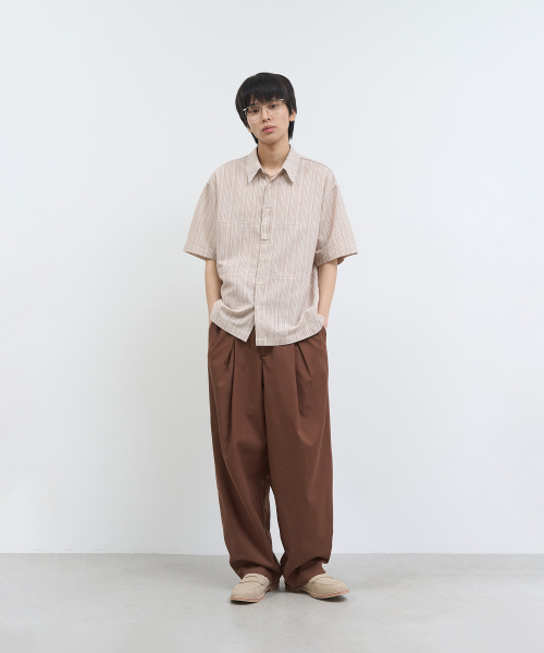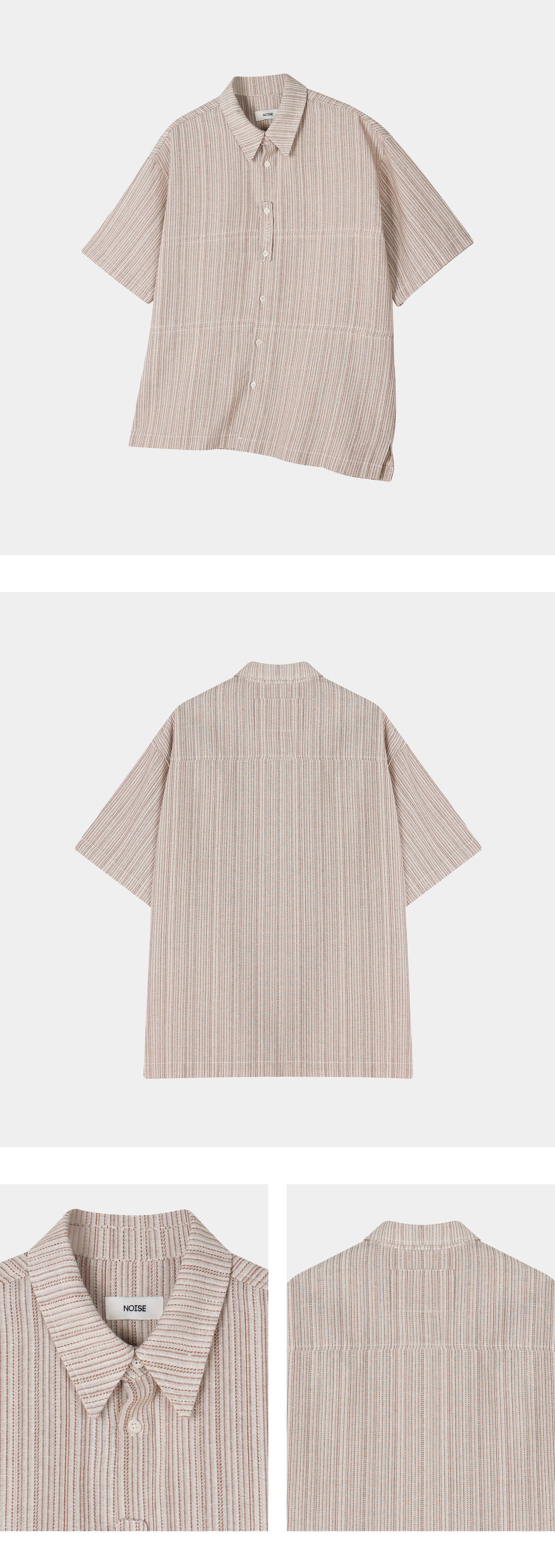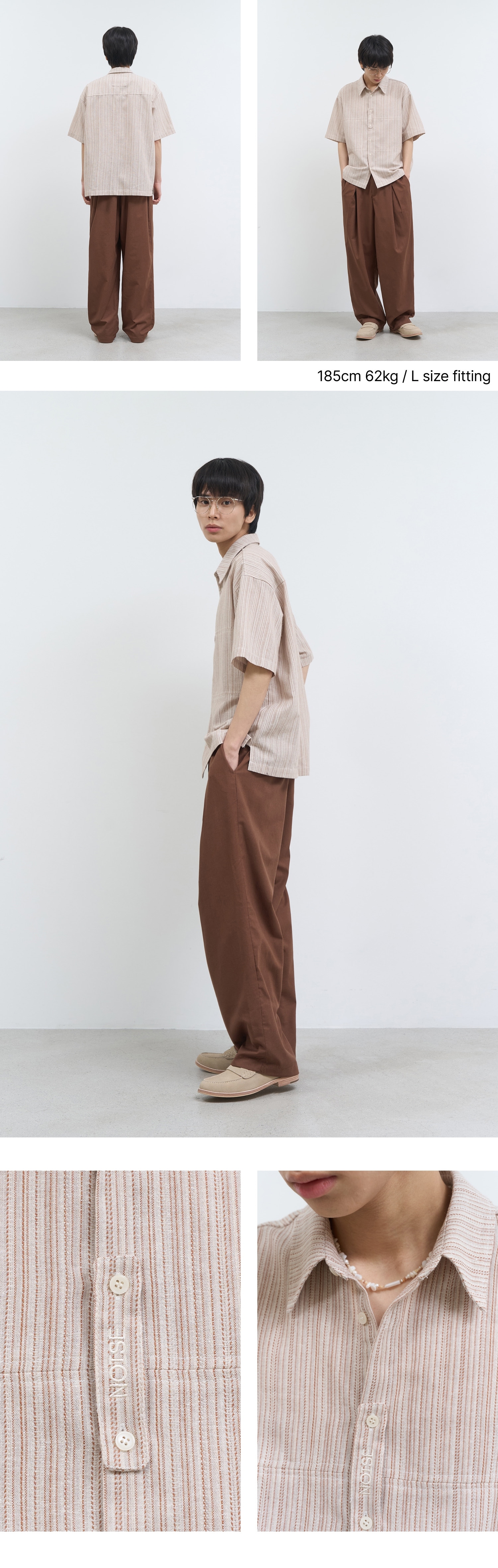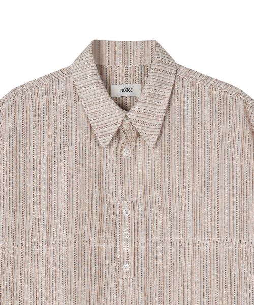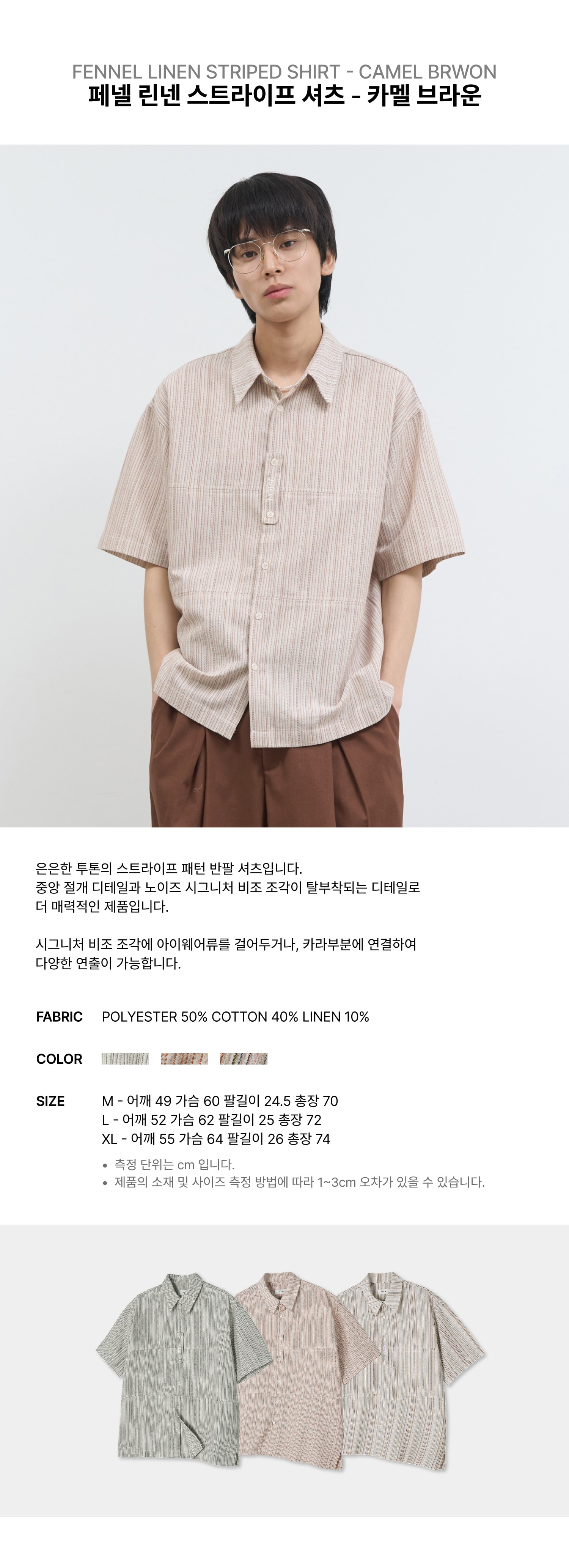 페넬 린넨 스트라이프 셔츠 - 카멜 브라운