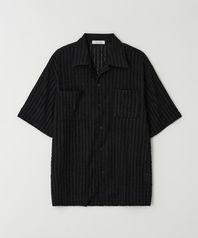 JN160 CROCHET OPEN COLLAR 1/2 SHIRT - BLACK