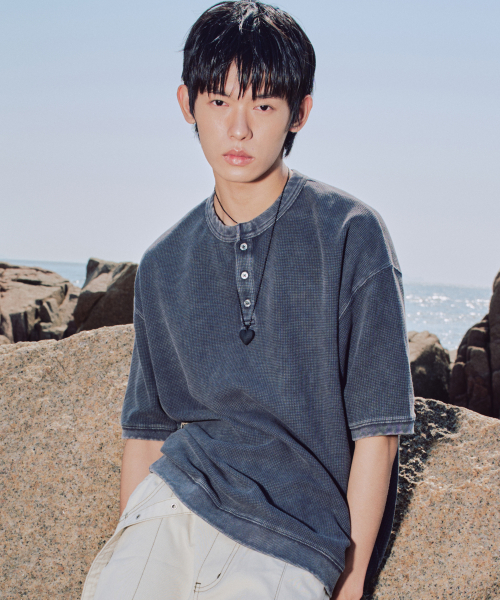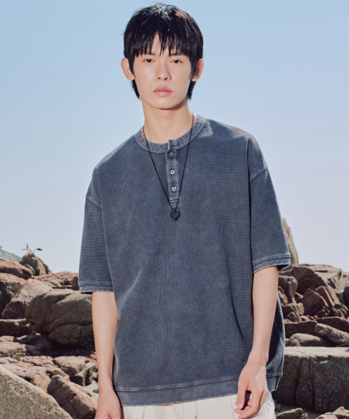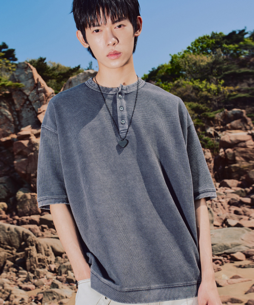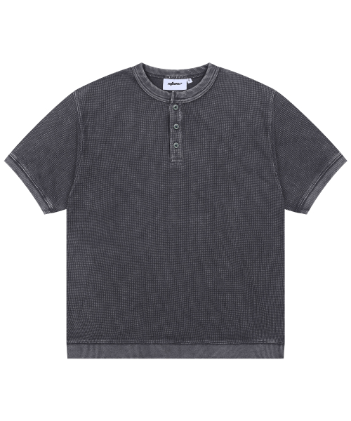 XTT144 빈티지 워싱 와플 헨리넥 티셔츠 (CHARCOAL)