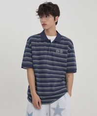 링 스터드 워셔블 헨리넥 하프 티셔츠 [블랙]