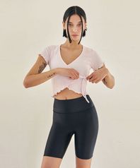 여성 요가복 DEVI-T0104-핑크 필라테스 뉴웨이브 랩 숏슬리브