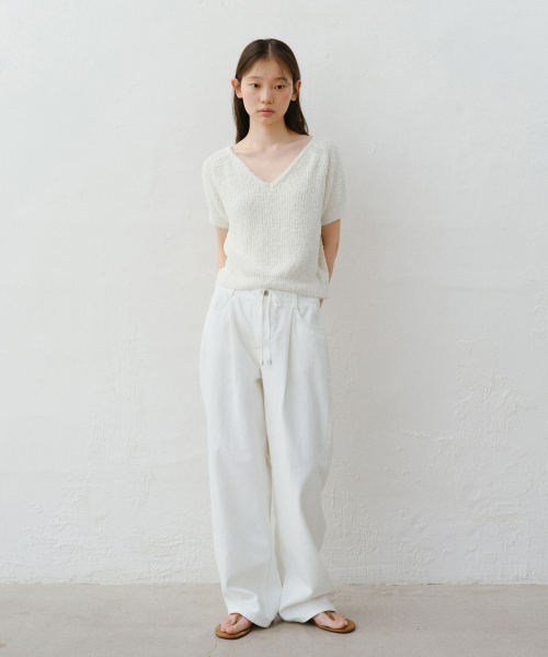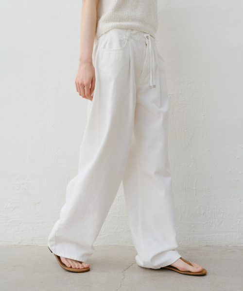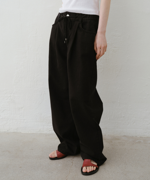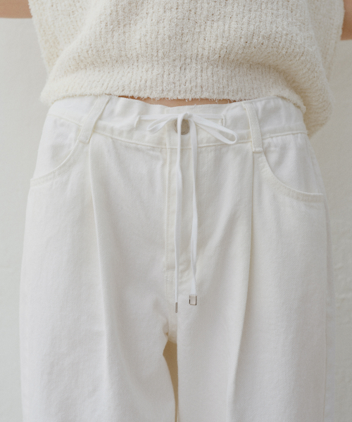 핀턱 스트링 와이드 데님