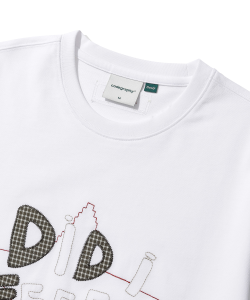 체크 패치워크 DIDI FEEL IT 반소매 티셔츠_화이트