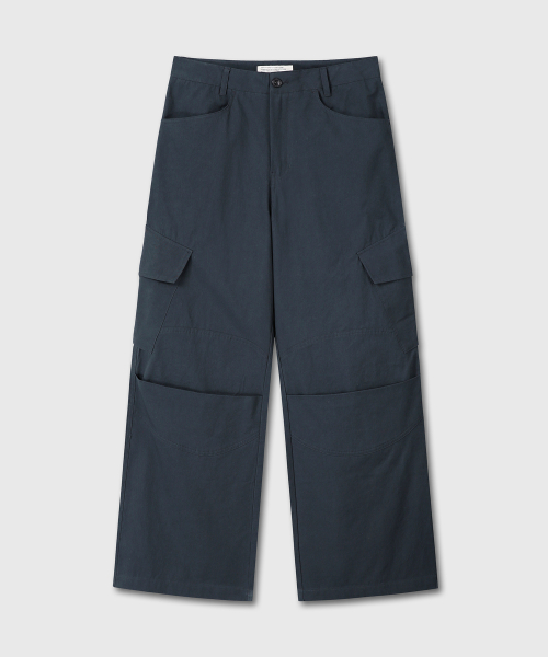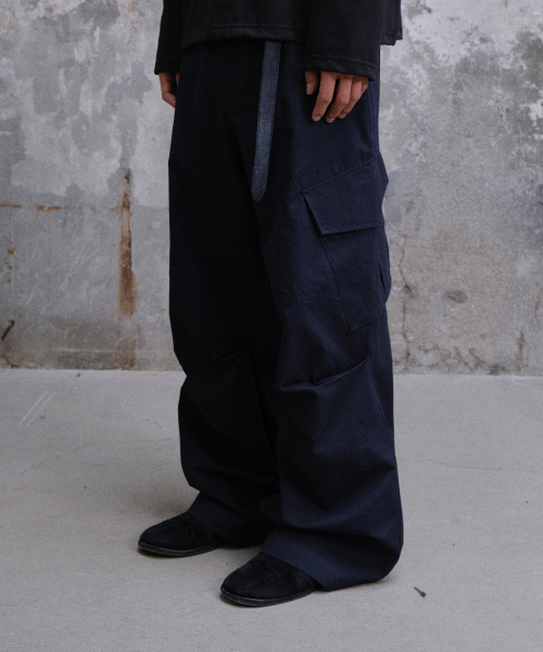 트랙 워시드 코튼 와이드 팬츠_네이비
